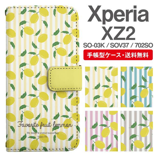 スマホケース 手帳型 Xperia XZ2 スマホ カバー SO-03K SOV37 702SO エクスペリア おしゃれ エクスペリアケース Xperia XZ2ケース レモン フルーツ 果物 ストライプ