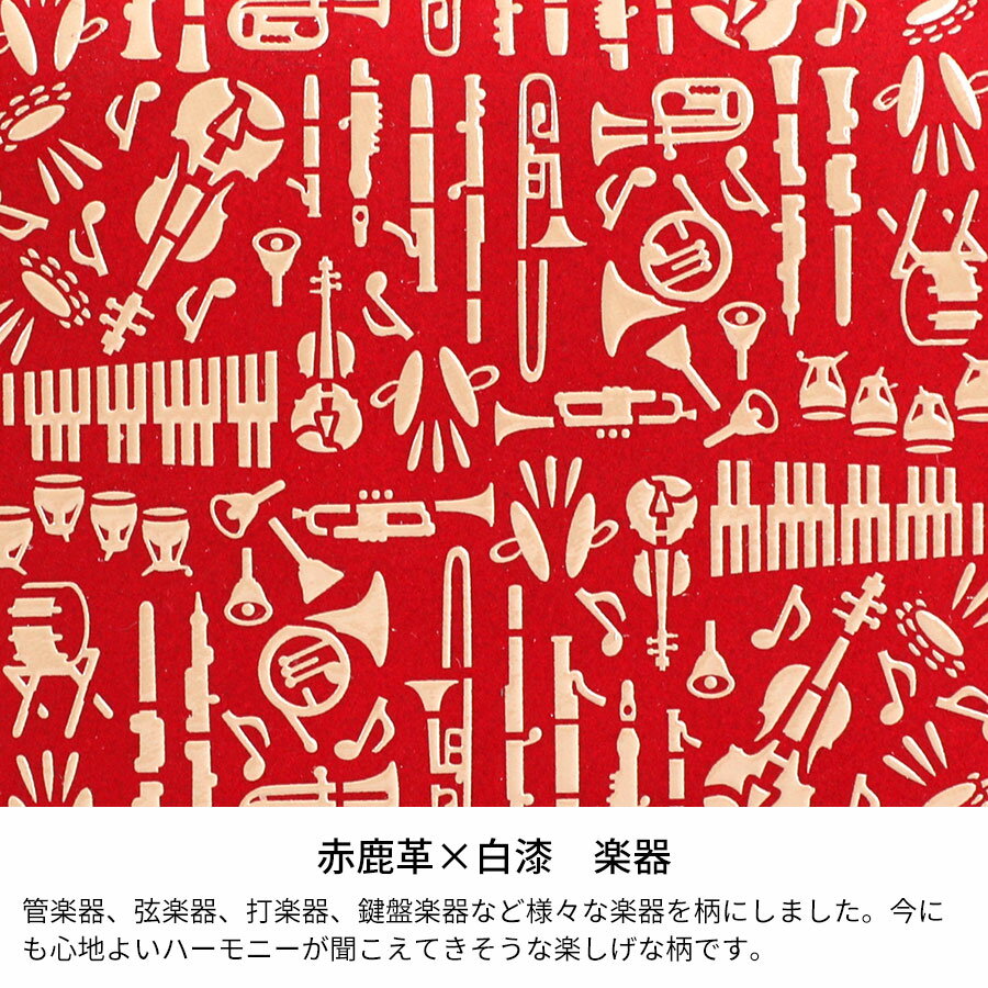 甲州印伝 ≪ 印傳屋 ≫ 2006 札入れ[赤地×白漆 楽器] 池田屋だけのオリジナル印傳★ 和風 和装 贈り物 ギフト プレゼント 財布 二つ折り 革小物 和小物 伝統工芸品 印伝 上原勇七
