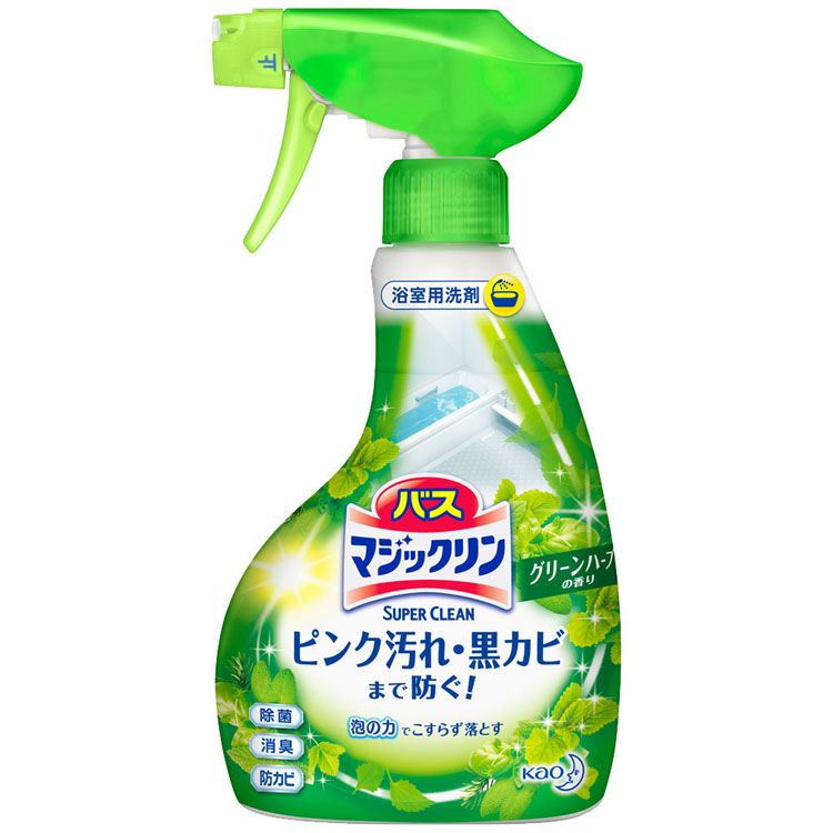 バスマジックリン 泡立ちスプレー スーパークリーン 本体 380ml 花王 バスマジックリン お風呂用洗剤 バスクリーナー 除菌 防カビ 泡立ちスプレー 本体 380ml アロマローズ グリーンハーブ【D】